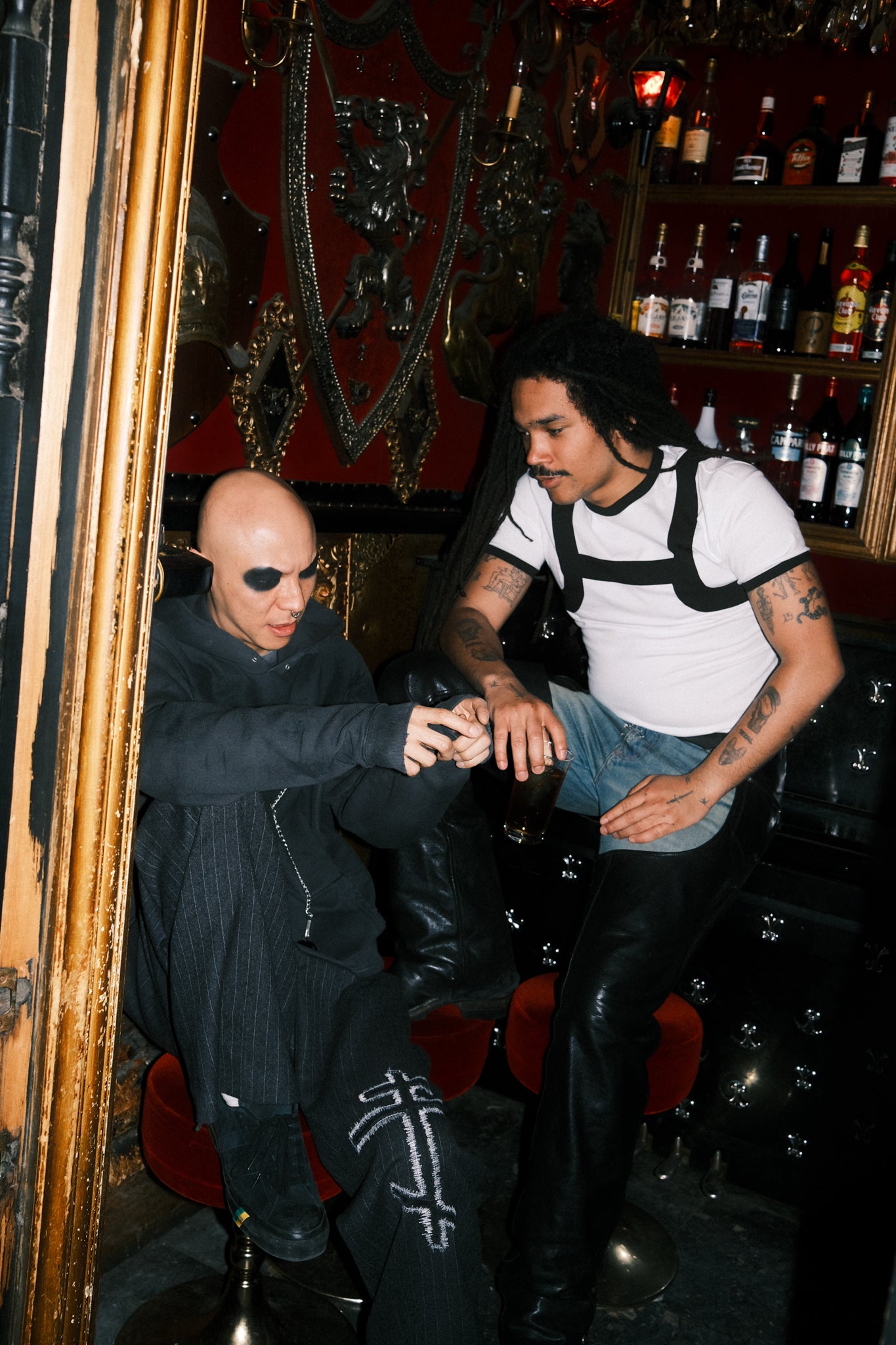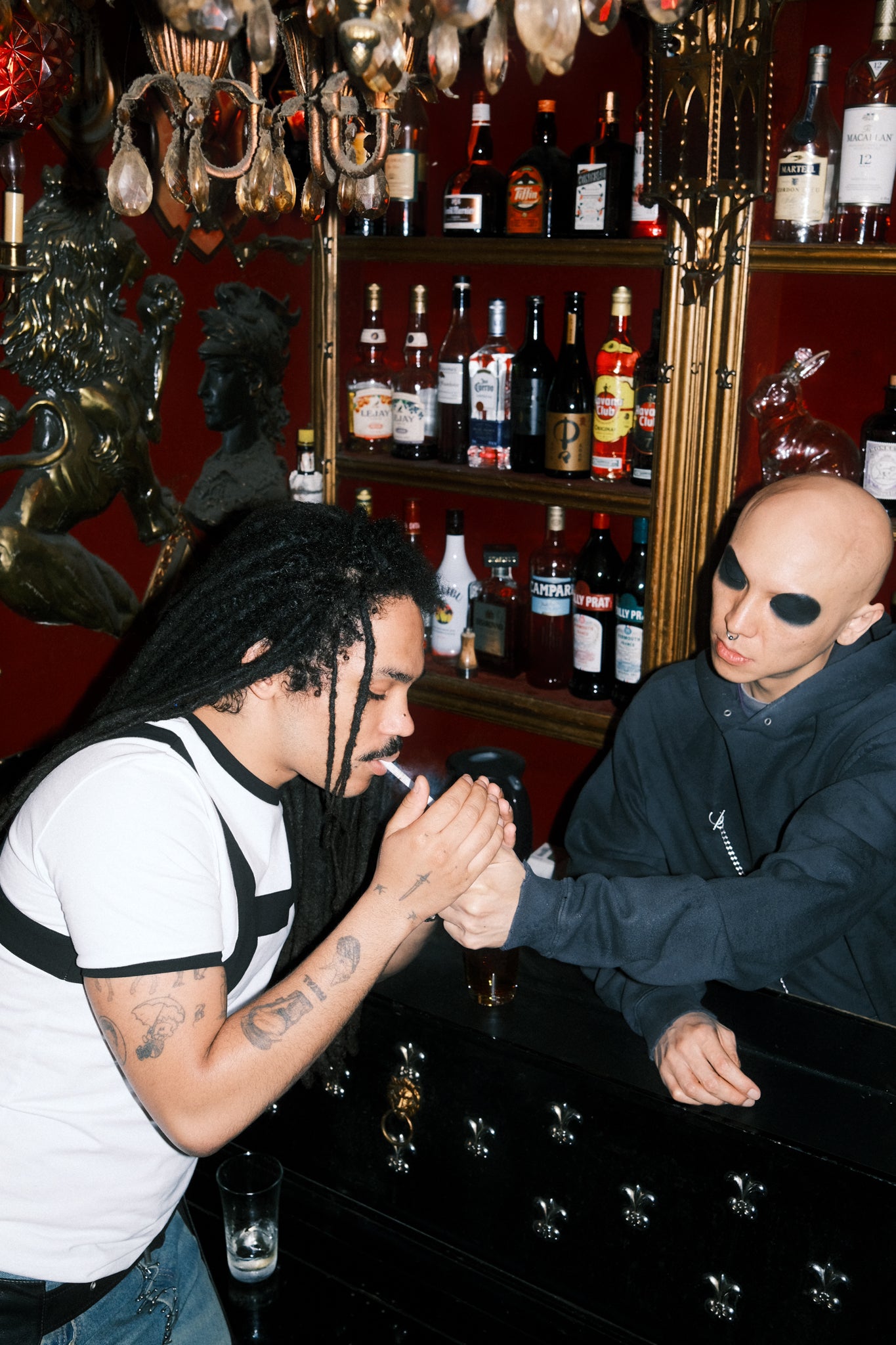 Skin joins us, and finally everyone is together. We clink glasses, we laugh, and the atmosphere becomes relaxed.