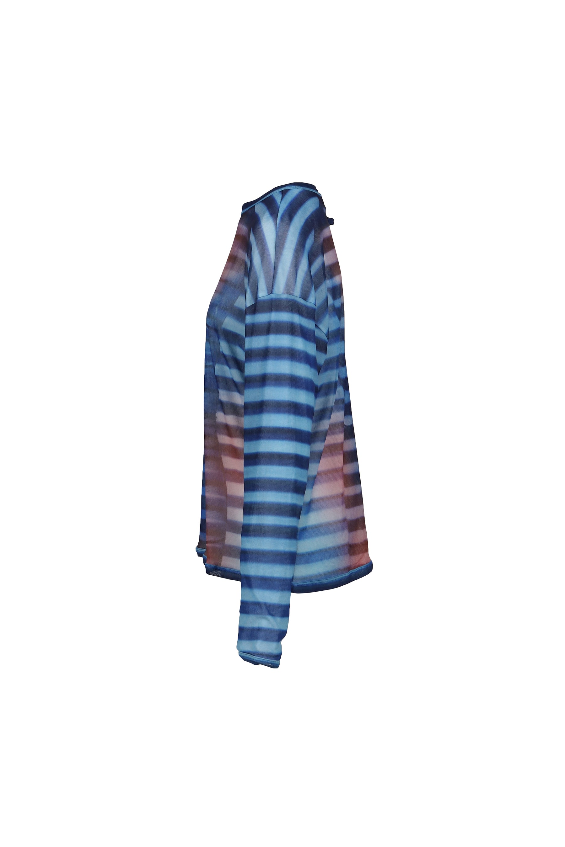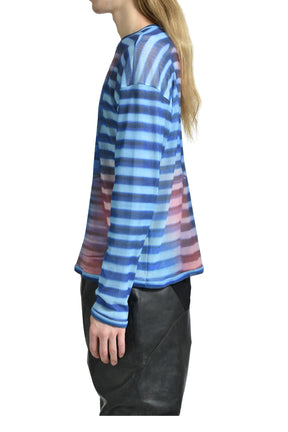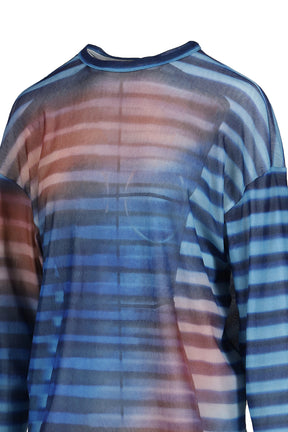 MESH OVERSIZED CREW NECK TOP PRINTED "AIR" / LT.BLU/BLU/PEACH