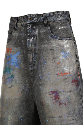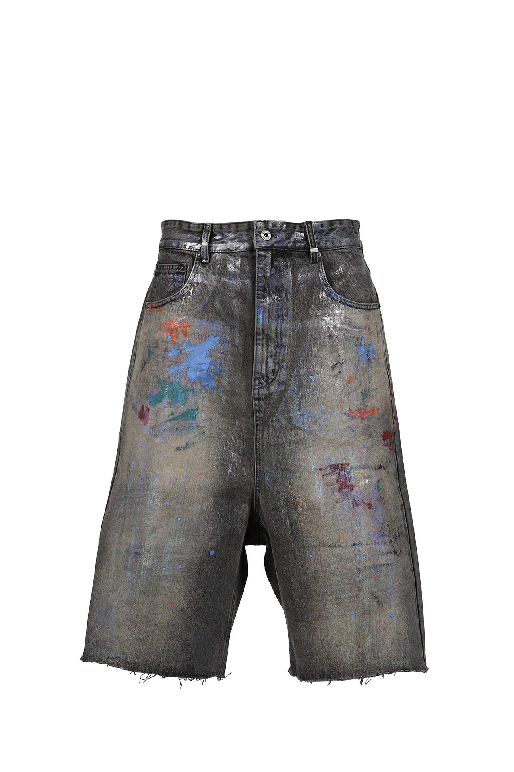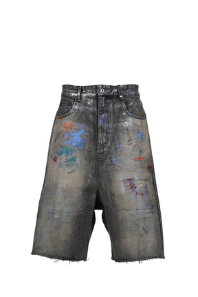 BLACK MENS PAINTED DENIM SHORTS / BLK