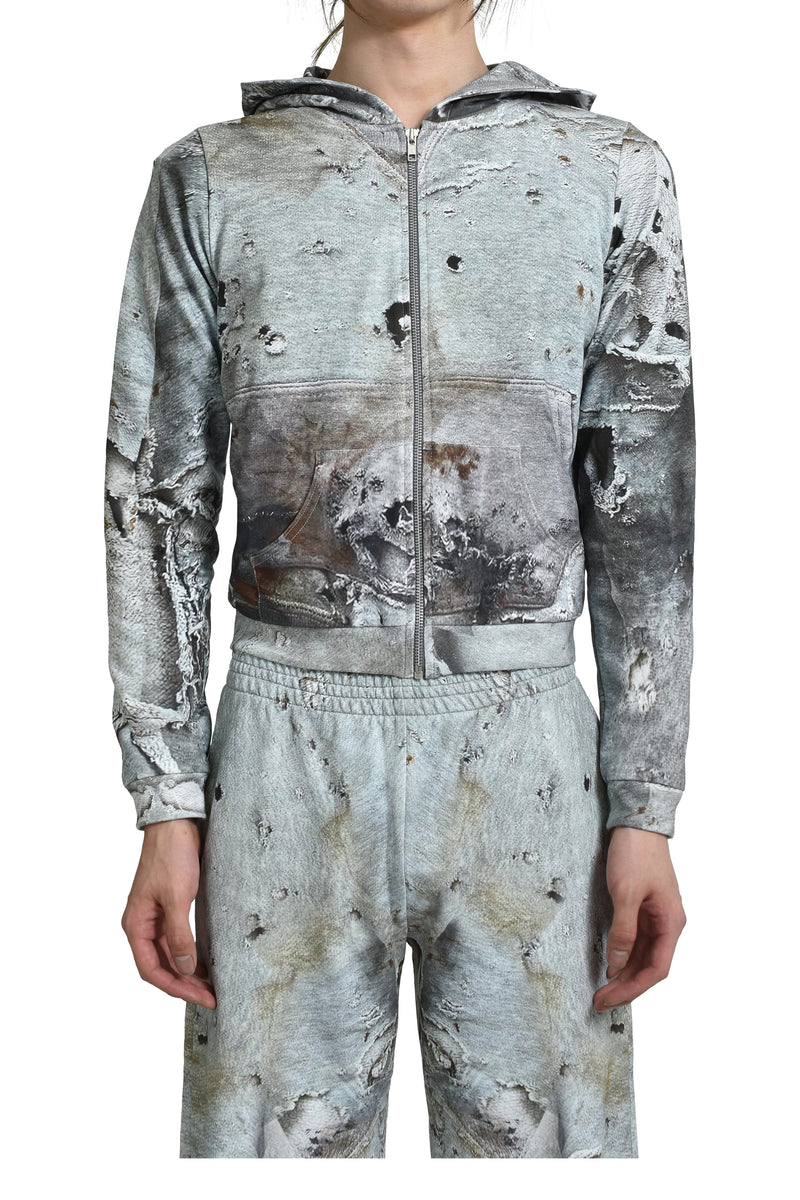 CHARCOAL MENS BOUCLE HOODIE ZIP-UP / CHA